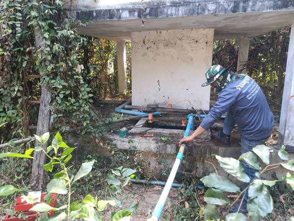 ????เข้าแก้ไขซ่อมแซมท่อน้ำประปาแตก บ้านอีเม้ง หมู่ที่ 7