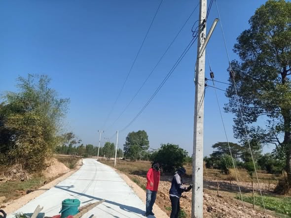 ดำเนินการติดตั้งไฟฟ้าสาธารณะ พร้อมเซ็นเซอร์สวิทช์แสงแดด หน้าบ้านนายทองดา อุปราจันทร์ เส้นบ่าอีก่าน บ้านโพนศรี หมู่ที่ 5..