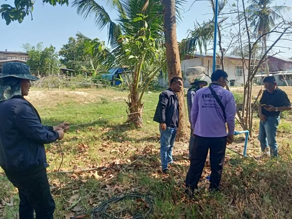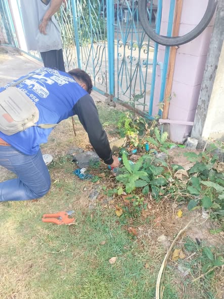 เข้าแก้ไขย้ายสายไฟเมนประปา บ้านป่ายาง หมู่ที่9..